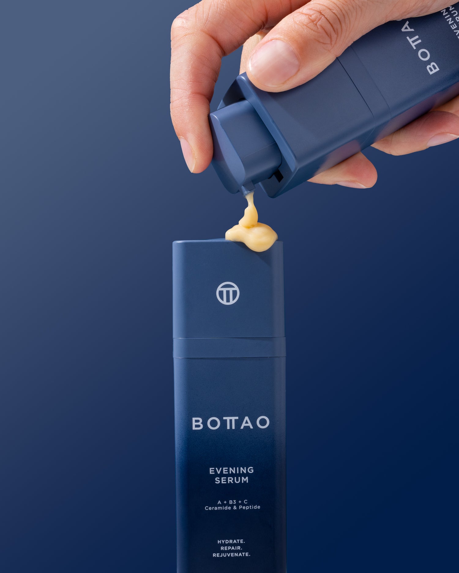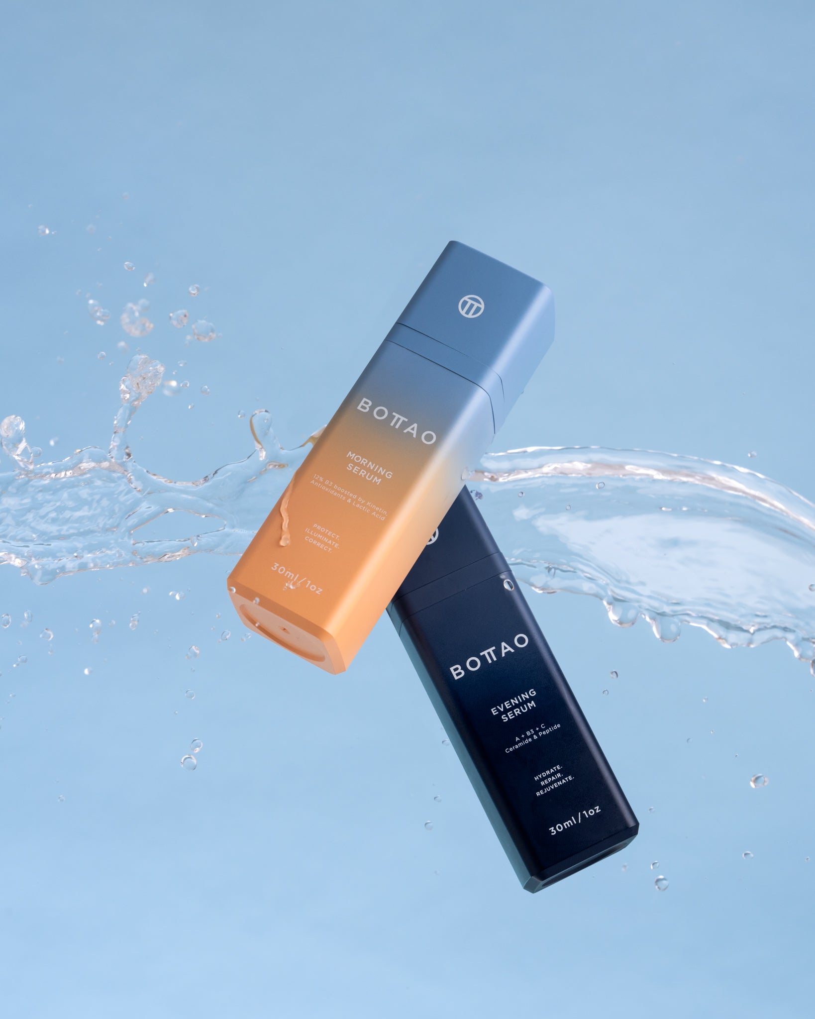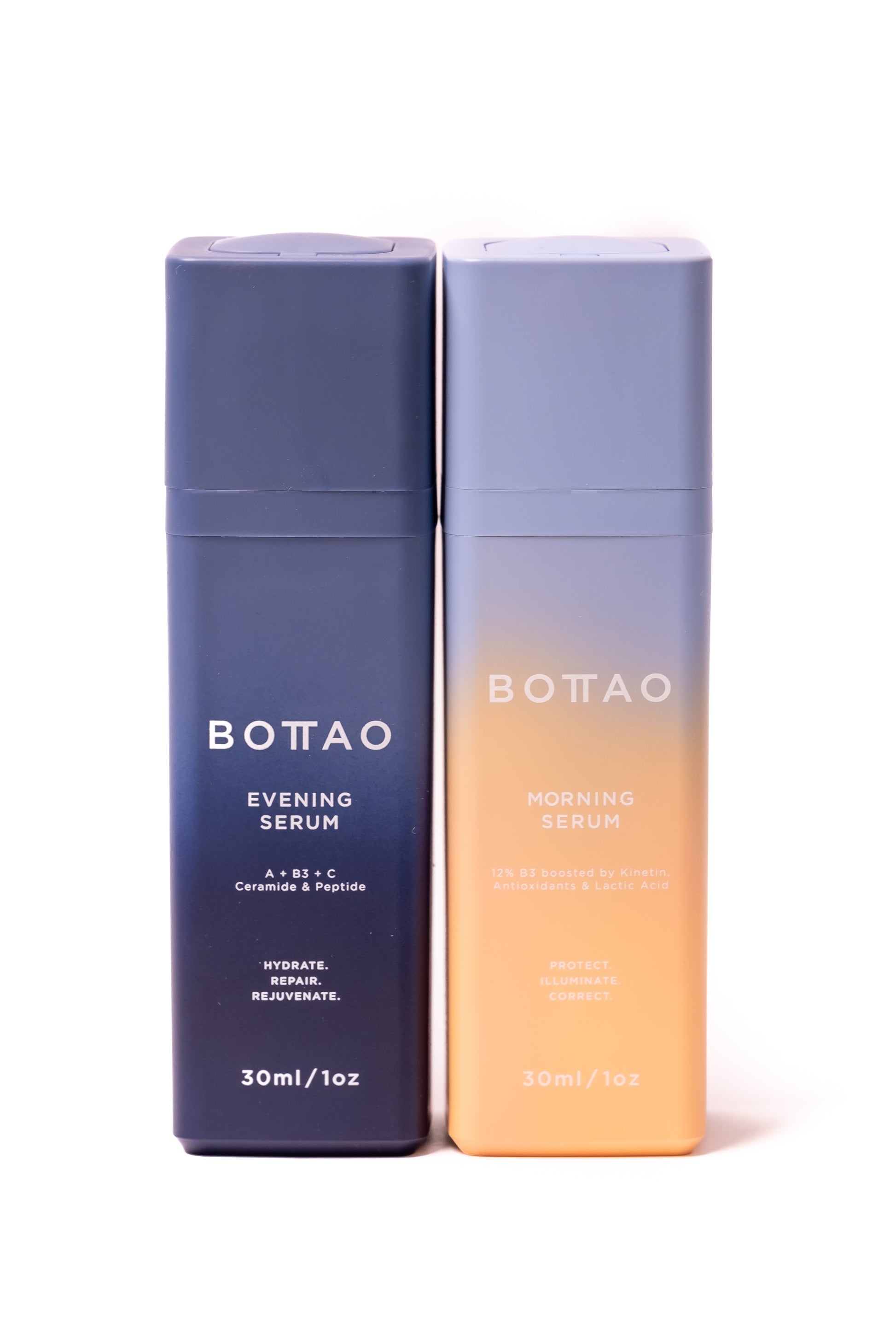 Together, Bottao Morning and Evening Serums will increase collagen production, even skin tone, reduce pigmentation, control sebum production, and reduce fine lines and wrinkles.